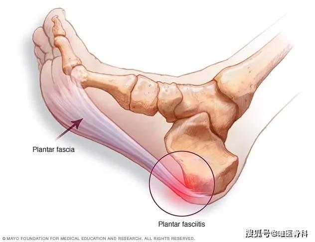 图1 足底筋膜炎的发生部位(图片由梅奥诊所提供)