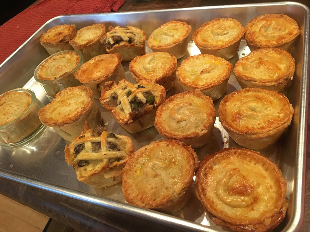 这个填馅肉派,是咱们去旅行时,最常吃到的当地特征早餐选项,里边各种肉类酱料填馅,味道丰厚又很管饱,特别牛排风味是我的独爱。美国也有相似的肉派,不过大部分是鸡肉口味(chicken potpie),这回是为了趴踢预备的菜色,除了经典款,我也试着仿照一下之前在旅行时吃到的口味。